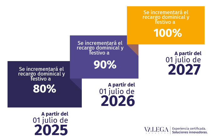 Así mismo, se establece que el recargo de 100% en los dias descanso obligatorio serán implementados de manera progresiva por el empleador de la siguiente manera,